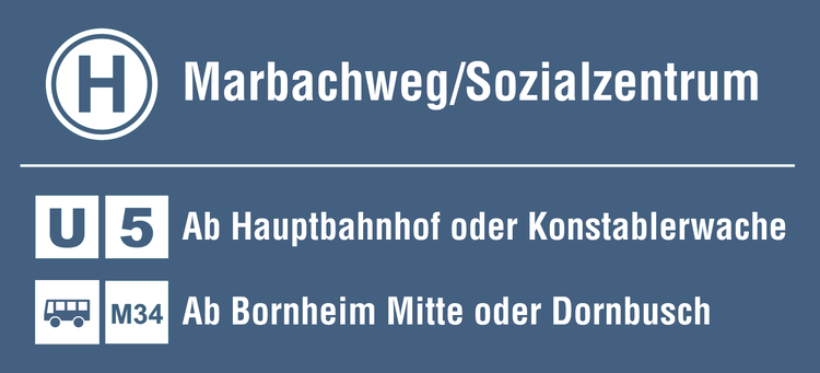 Die Vereinsabende und den Museumsshop in den Vereinsräumen im Eckenheimer Depot erreichen Sie bequem mit den öffentlichen Verkehrsmitteln von der Haltestelle „Marbachweg/Sozialzentrum“ mit der U-Bahn-Linie U5 oder der Buslinie M34.