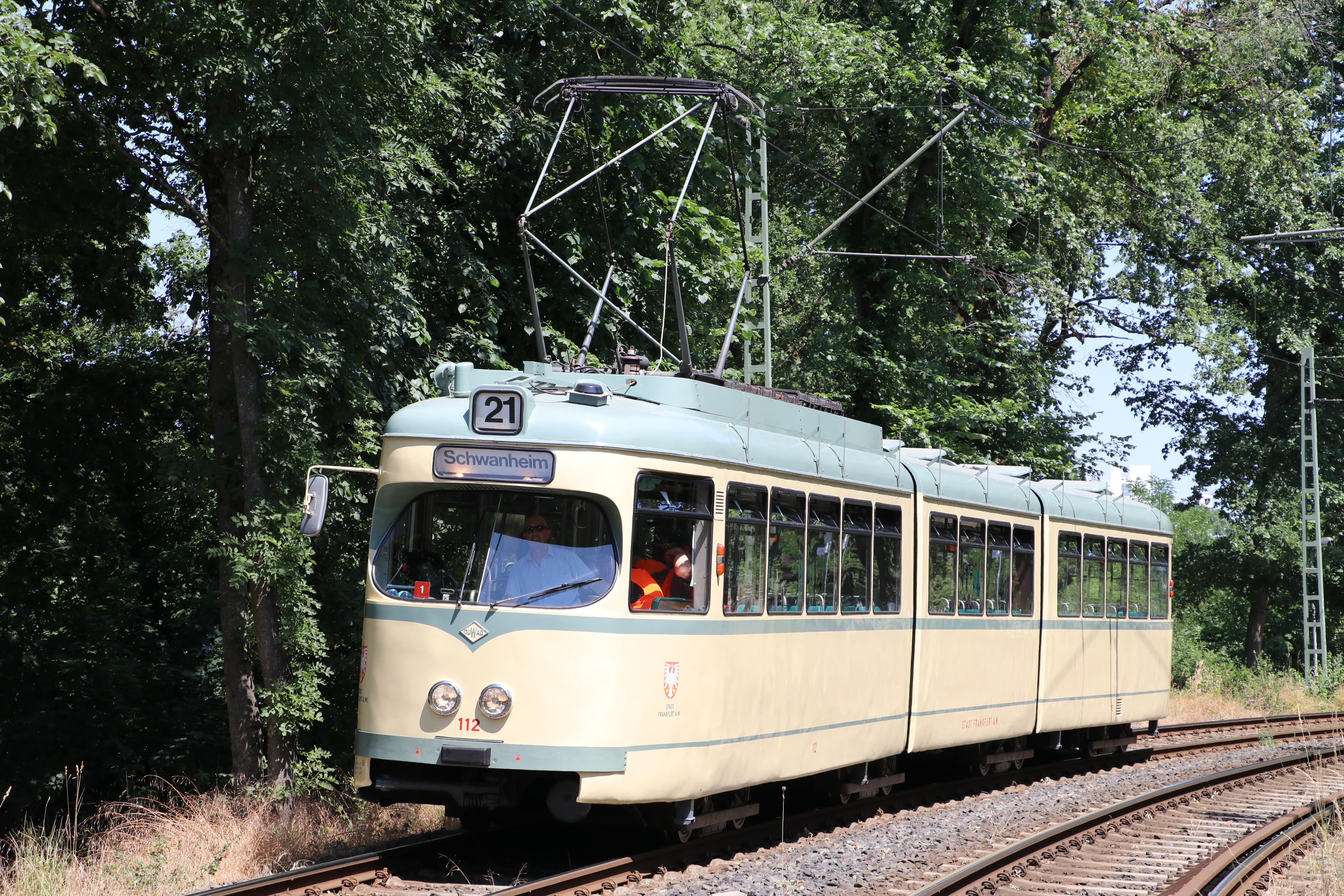 Zur Mitfahrt in den historischen Fahrzeugen wird lediglich eine für Frankfurt gültige RMV-Fahrkarte oder das Deutschland-Ticket benötigt.